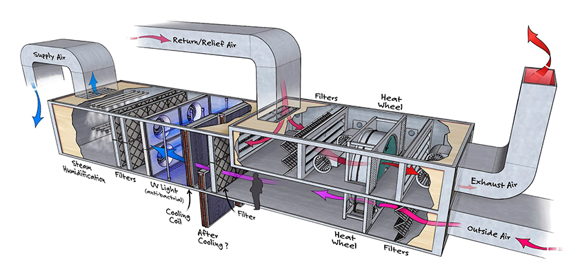 Occupancy sensors, CO2 monitors, and humidity sensors that automatically adjust airflow and temperature for optimal Indoor Air Quality (IAQ)